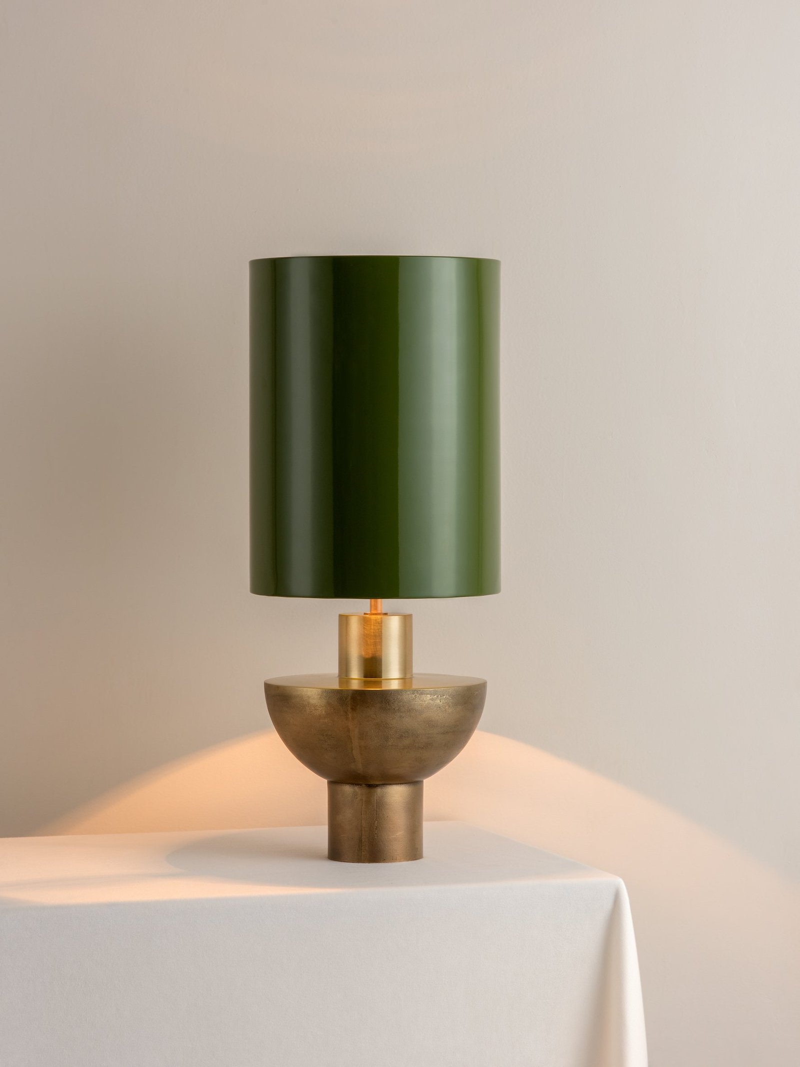 Editions brass lamp with + green lacquer shade
