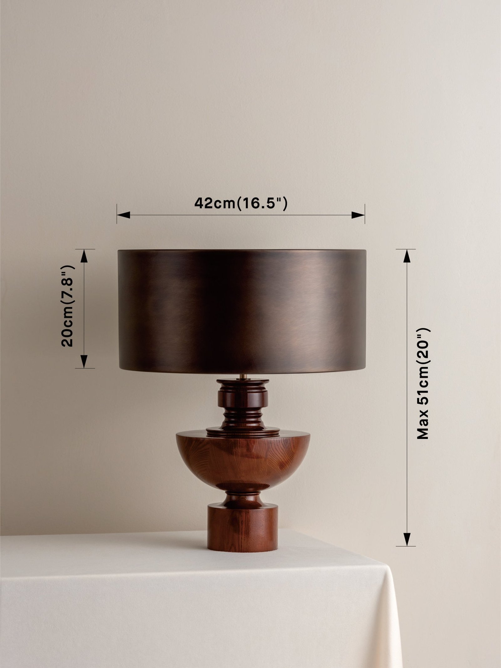 This combination comprises of: Base = Solid spun wood base. Shade = Aged bronze.