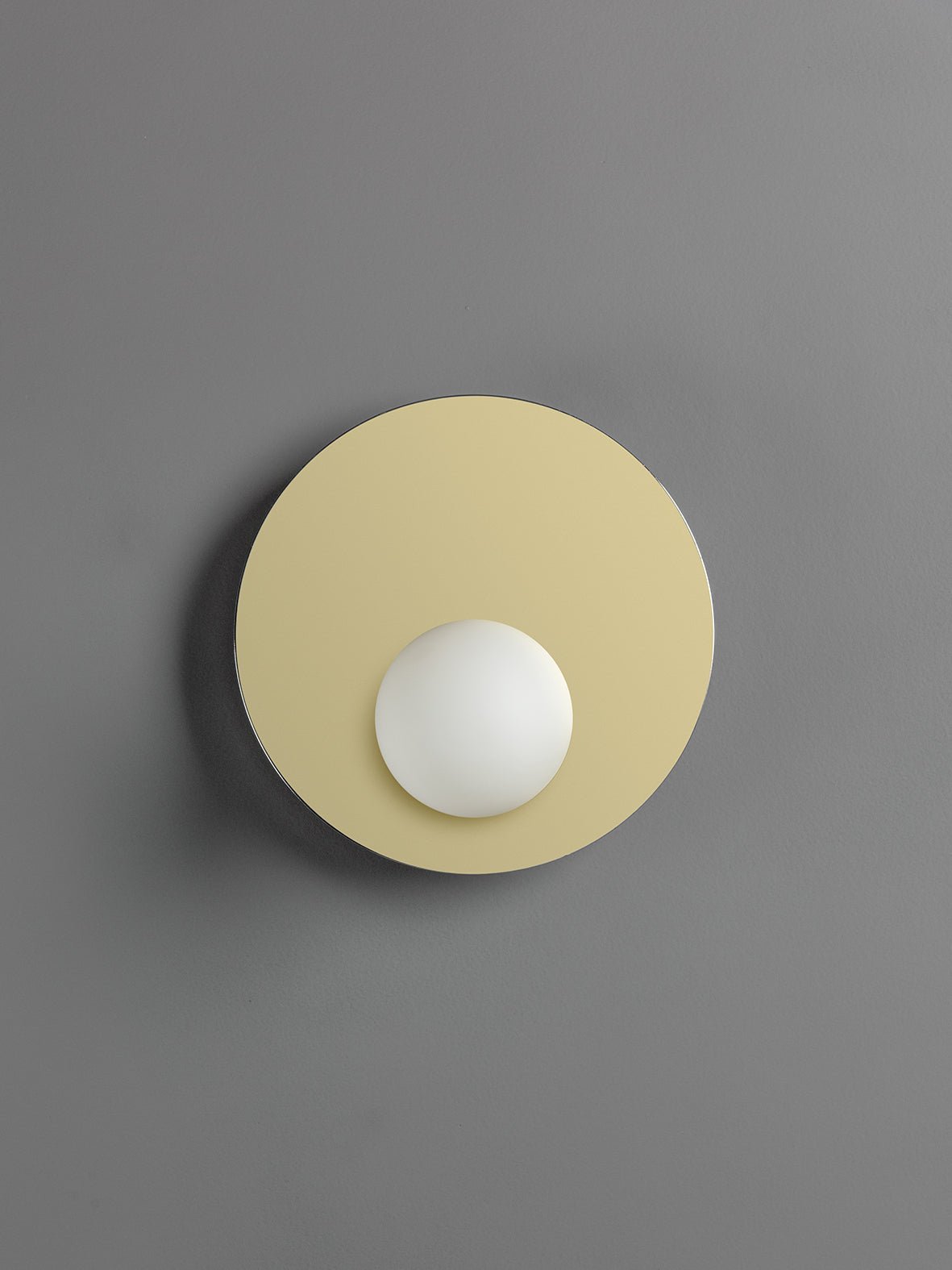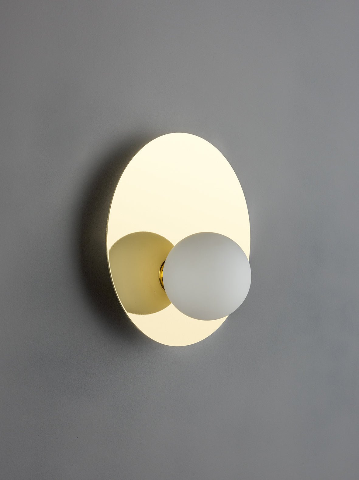 Slick. spherical. simplicity. Reminiscent of an eclipse. our Luna wall light emphasises the simple beauty of a circle. Depth and dimension is created by our matt opal sphere reflected in the highly polished brass plate. Opal globe ball included but G9 bulb is not included.