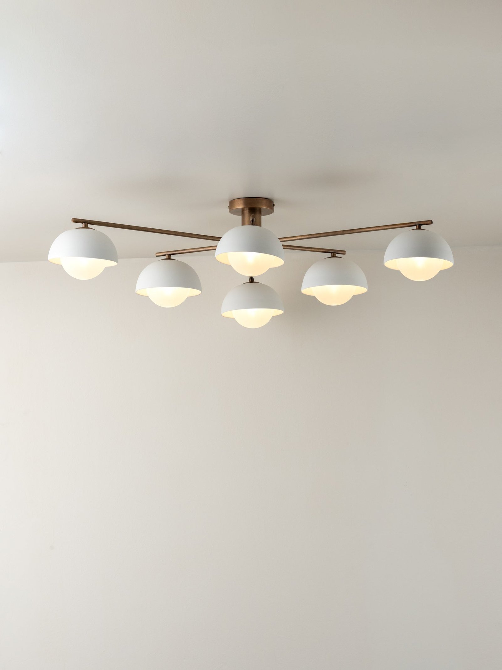 Timeless. Delicate. Elegance. Our Porsa range has been designed to enhance the refined and delicate nature of its porcelain shades. Uncomplicated forms showcase each delicate dome. Lit with a frosted white globe each piece displays a beautifully diffused light and reflective glow against the brushed brass stems.