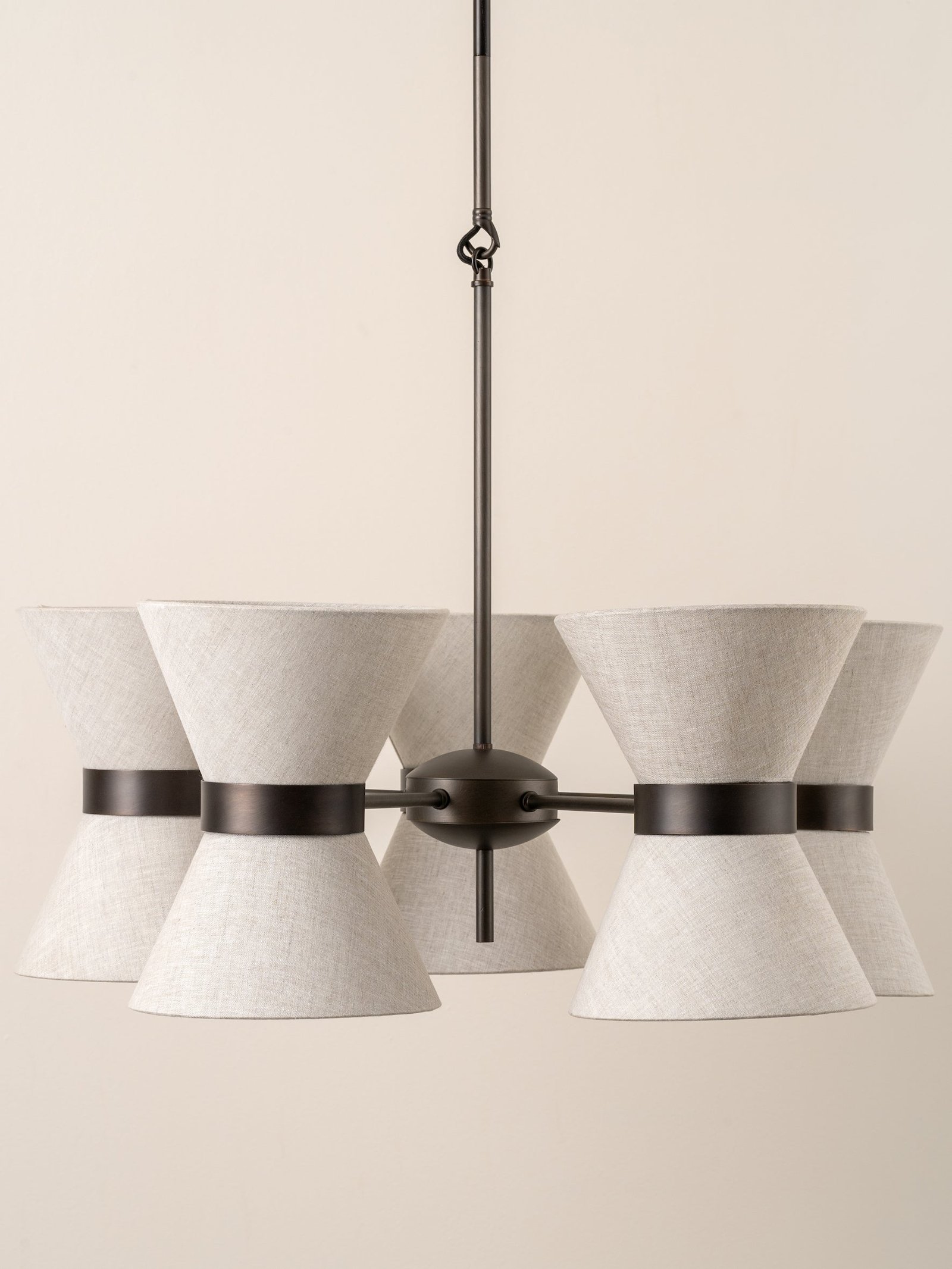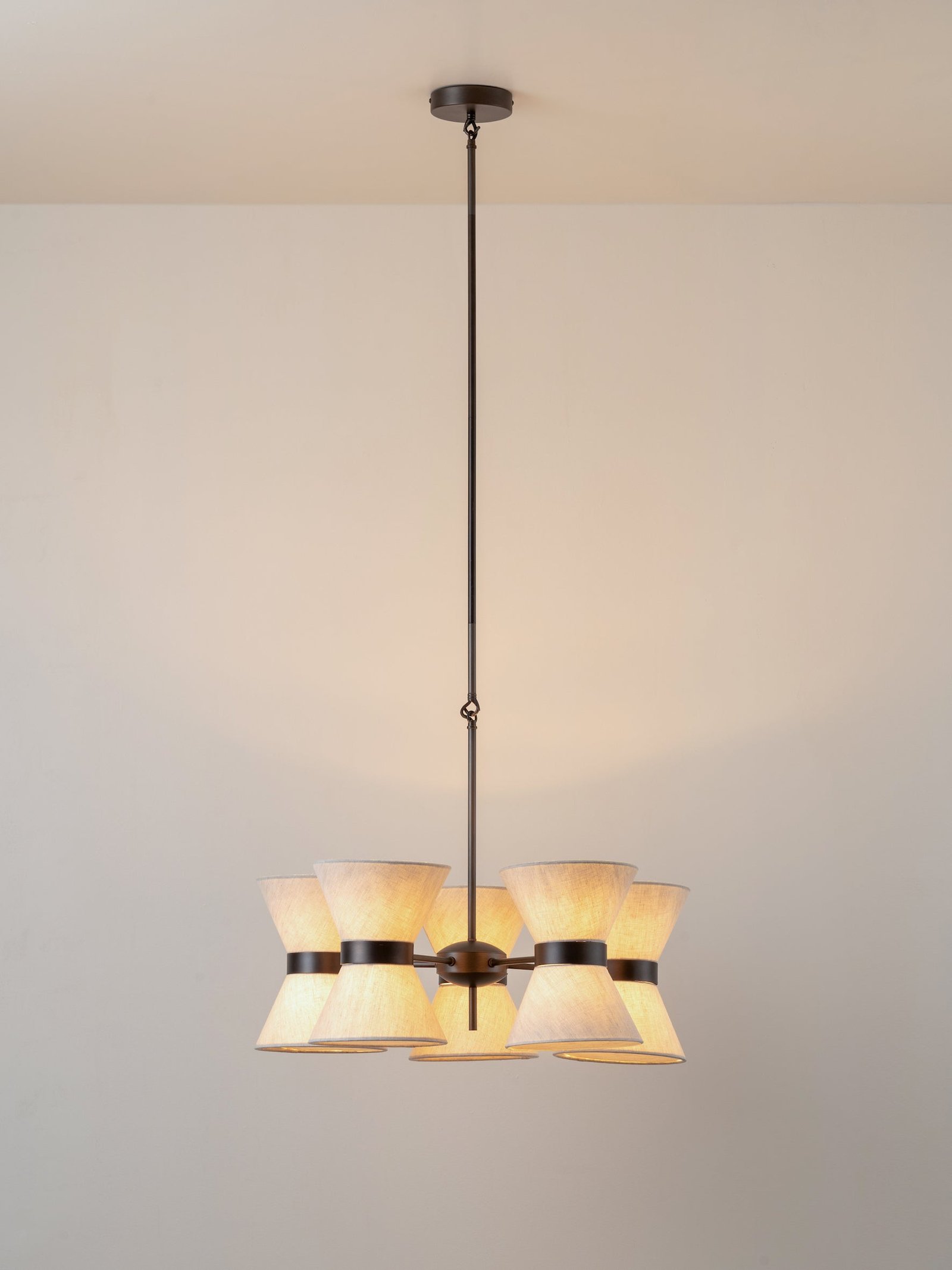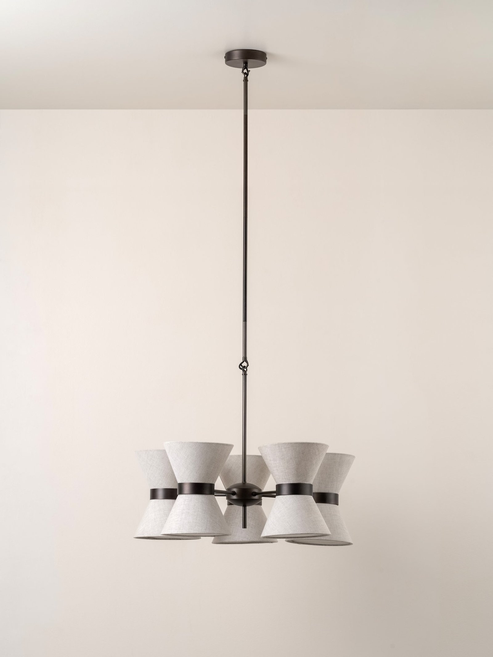 Be the first to review “Renwick – 5 light linen and bronze pendant”